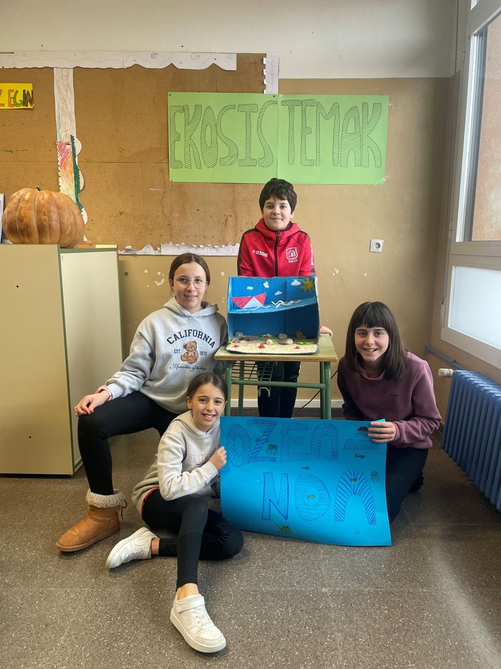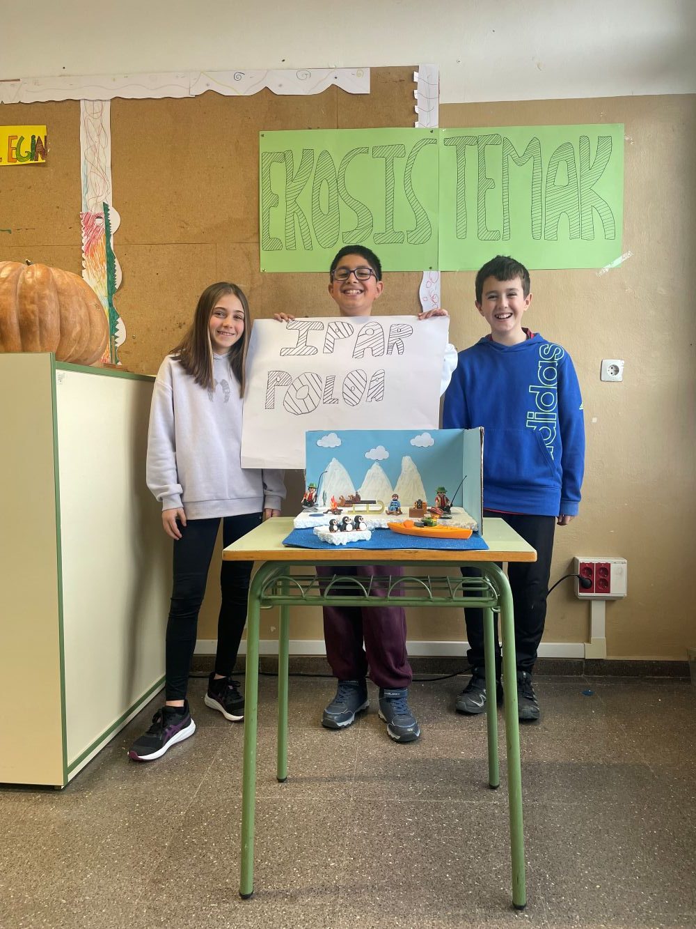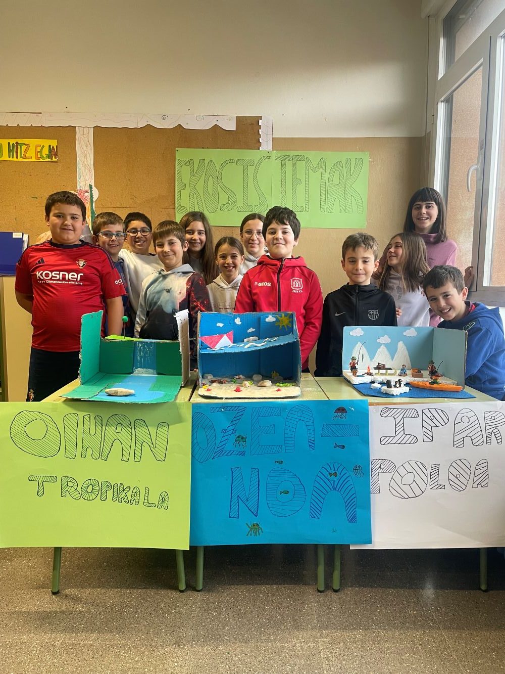 Proiektuari amaiera emateko talde bakoitzak ekosistema baten maketa egin du (Ipar poloa, ozeanoa eta oihan tropikala).